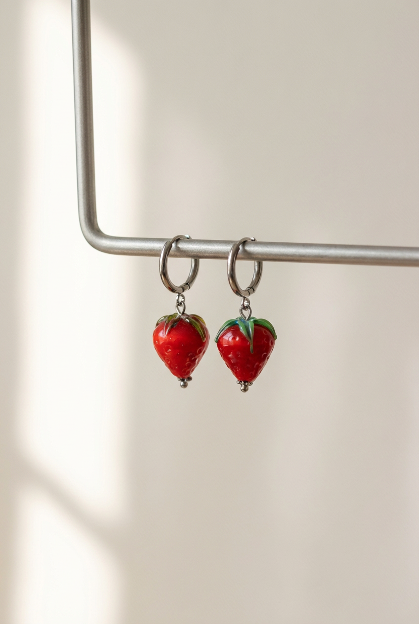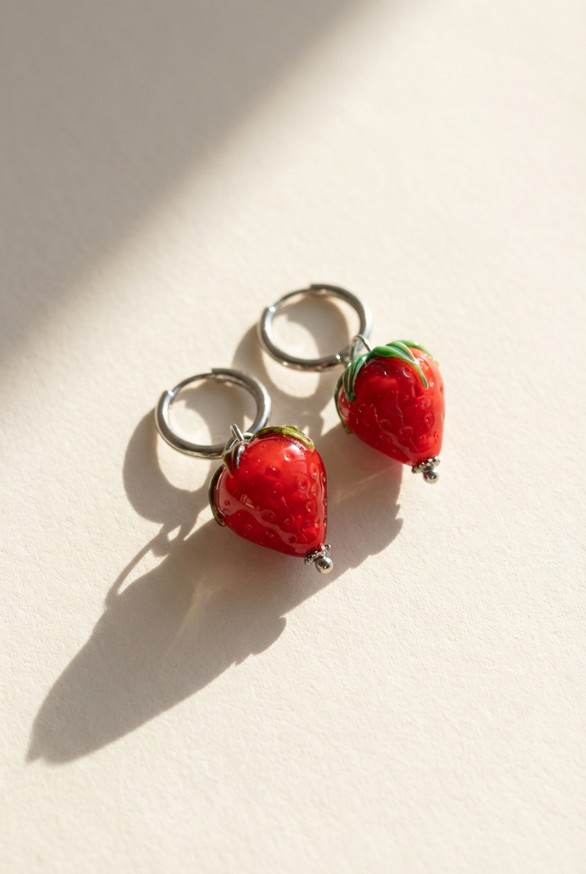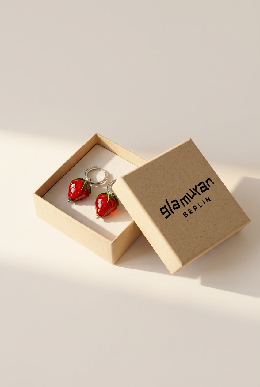 Diese süßen Erdbeer-Ohrringe bringen Sommerlaune in deinen Alltag! Gefertigt aus hochwertigem, durchgefärbtem Glas im Murano-Stil – ganz ohne Lack oder Farbe – bleibt ihr Glanz dauerhaft bestehen.